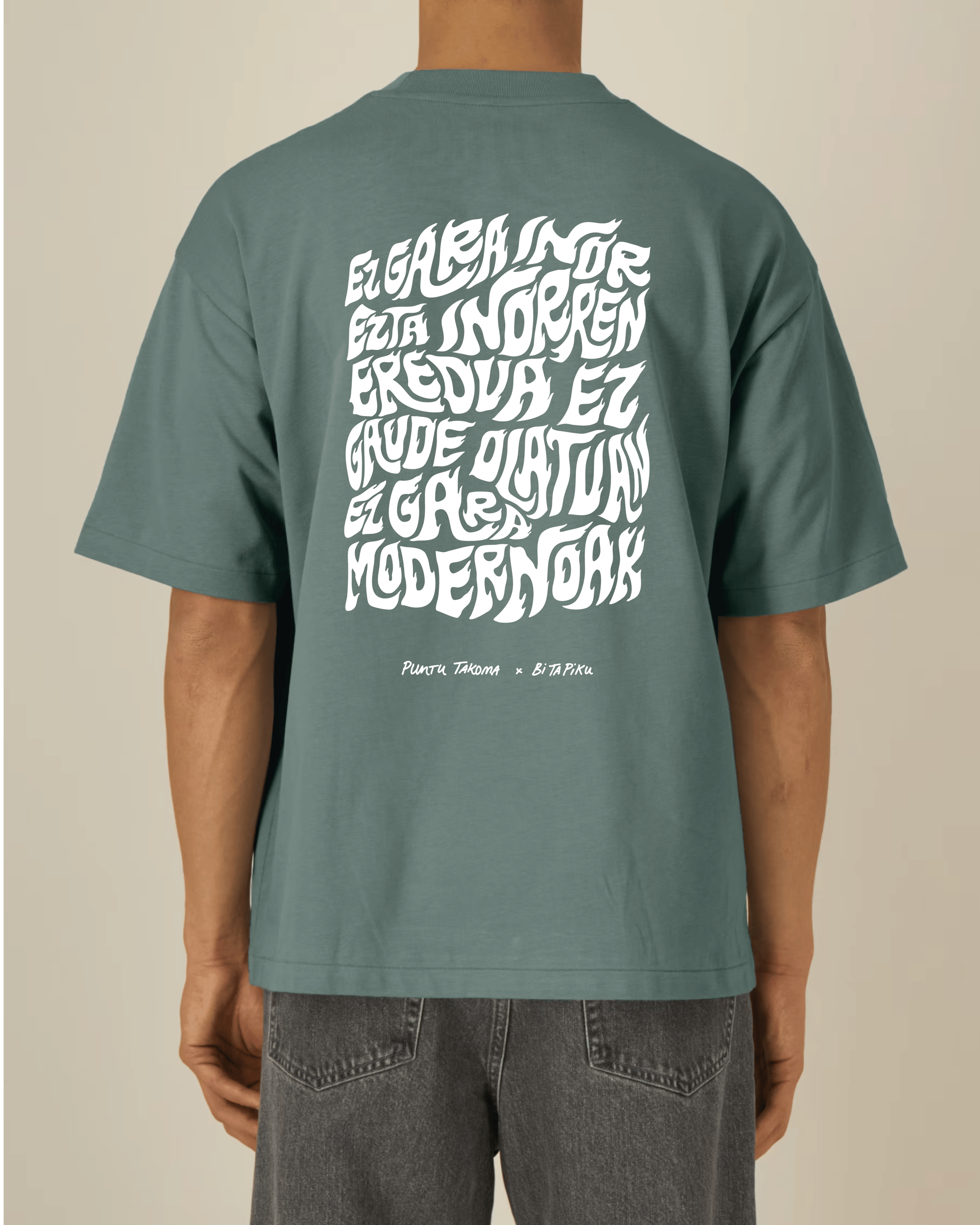 Zer esan nahi du horrek? Oraindik kamisetak ez daudela eginda, zuen eskaerak jasotzen ditugunean hasiko dugula produkzioa. Kamiseta guztiak banan-banan eta eskuz serigrafiatuko ditugu, mimo handiz, gure Eibarko tailertxoan.