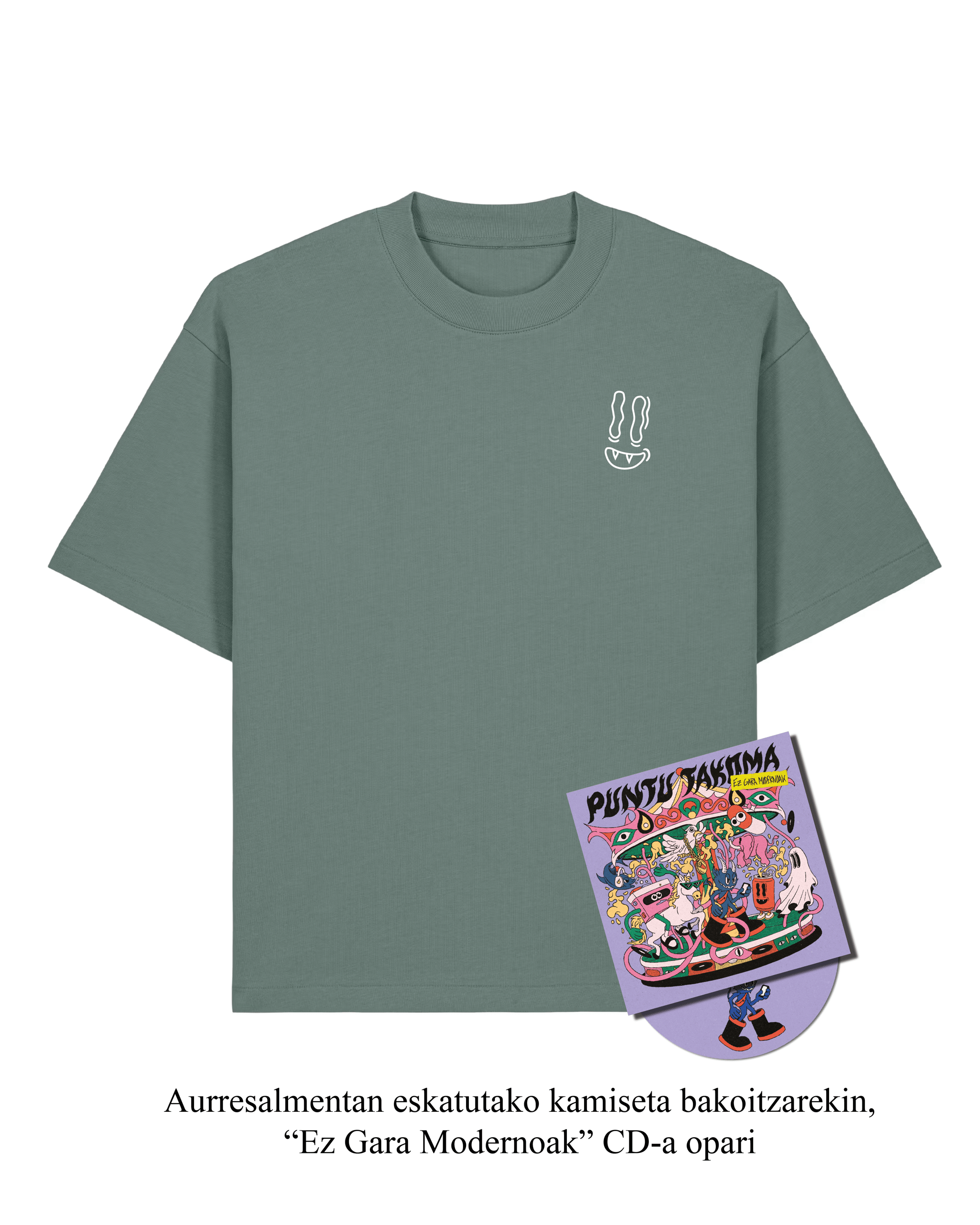 Zer jasoko duzu etxean? Berariaz zuretzat egindako kamiseta, pegatina molongiak eta 'Ez Gara Modernoak' CD-a.